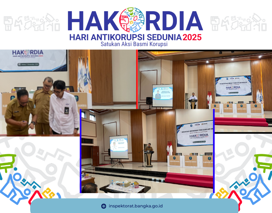 Sungailiat – Dalam rangka memperingati Hari Anti Korupsi Sedunia (Hakordia) 2025, Inspektorat Kabupaten Bangka bersama Perwakilan BPKP Provinsi Kepulauan Bangka Belitung, Aparat Penegak Hukum (APH), serta Aparatur Desa menyelenggarakan kegiatan “Sosialisasi Masyarakat Pemelajar Anti Korupsi” pada Selasa, 9 Desember 2025 di Kabupaten Bangka. Kegiatan ini dimulai pada pukul 09.00 WIB dengan pembacaan doa oleh Bapak Iwan Zulfikar.